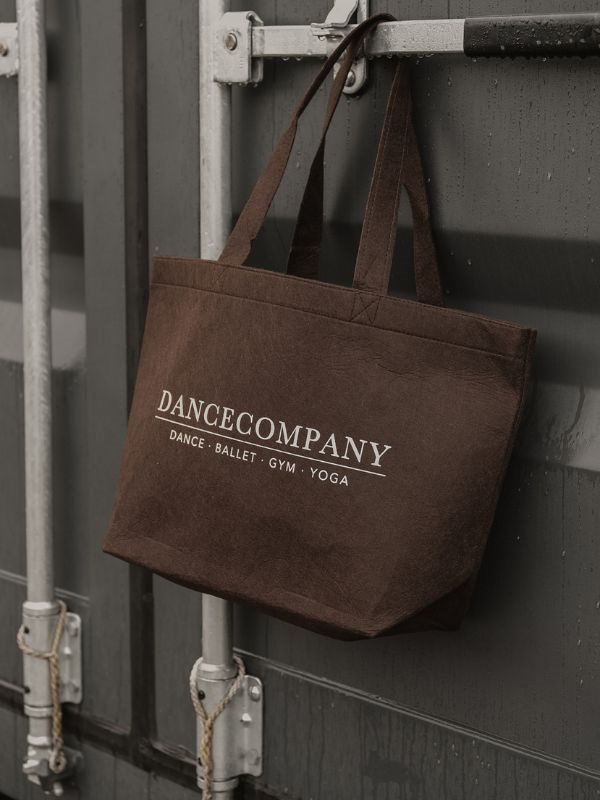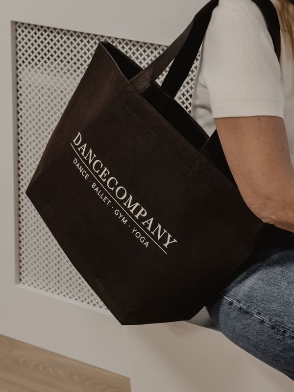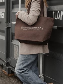 Flot mørkebrun farve. Kraftig filt. Med hvidt tryk : Dancecompany
