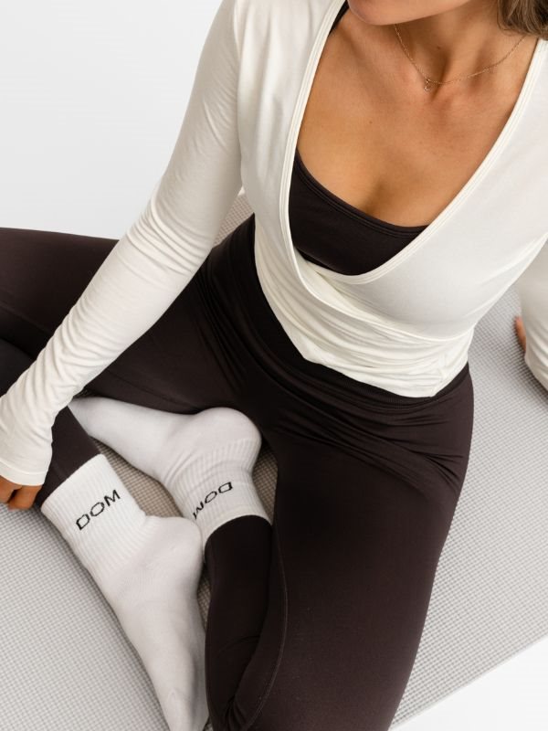 Wrap langærmet blød bluse fra Drop of Mindfulness. Klassisk slå-om bluse et tidløst design med moderne komfort – ideel til både yoga, pilates, eller et afslappet, stilfuldt look i hverdagen.
