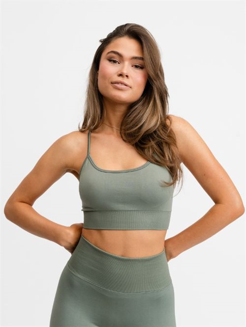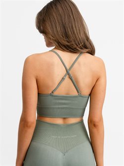 Blød og behagelig seamless sports bh med justerbare stropper, der krydser på ryggen.