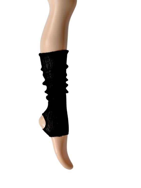 Den åbne hælstrop sikrer, at benvarmerne bliver siddende over vristen. Med en længde på 45 cm dækker de underbenene komfortabelt uden at begrænse bevægelsen.